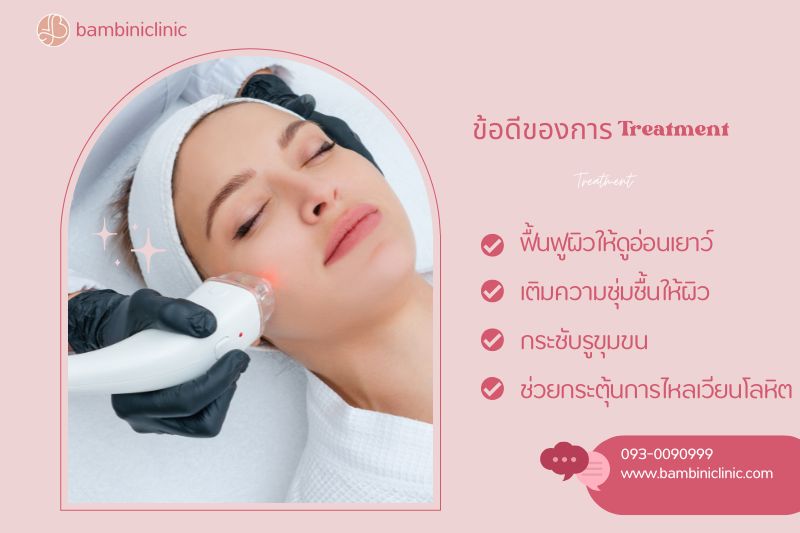 การทำ Treatment ไม่เพียงแต่ช่วยบำรุงผิวให้แข็งแรงและดูดีขึ้น แต่ยังช่วยให้คุณรู้สึกสดชื่นและผ่อนคลายมากขึ้นอีกด้วย หากคุณกำลังมองหาคลินิกความงามที่มีมาตรฐานสูงและทีมแพทย์ผู้เชี่ยวชาญ Bambini Clinic พร้อมให้บริการ Treatment ที่ครบวงจรและเหมาะกับทุกสภาพผิว