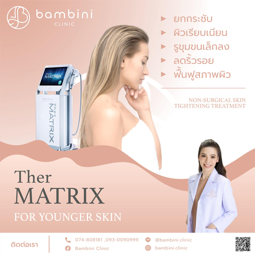 Thermatrix คือ เครื่องมือยกกระชับด้วยนวัตกรรมคลื่นวิทยุขั้วเดี่ยว monopolar rf ตัวเครื่องจะปล่อยพลังงานความร้อนที่สม่ำเสมอผ่านชั้นใต้ผิวหนังแท้ เพื่อสร้างคอลลาเจนใหม่ให้กับเซลล์ผิว รวมถึงลดร่องรอยต่างต่าง ขณะเดียวกันก็สามารถสลายไขมันส่วนเกินได้ด้วย
